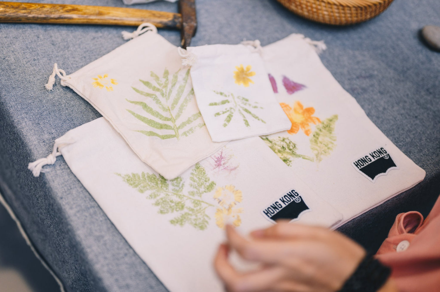 植物拓印是利用敲擊的方式,將花葉汁及形態,印壓布品上。讓我們將植物 的美麗形態和顏色保存起來吧。